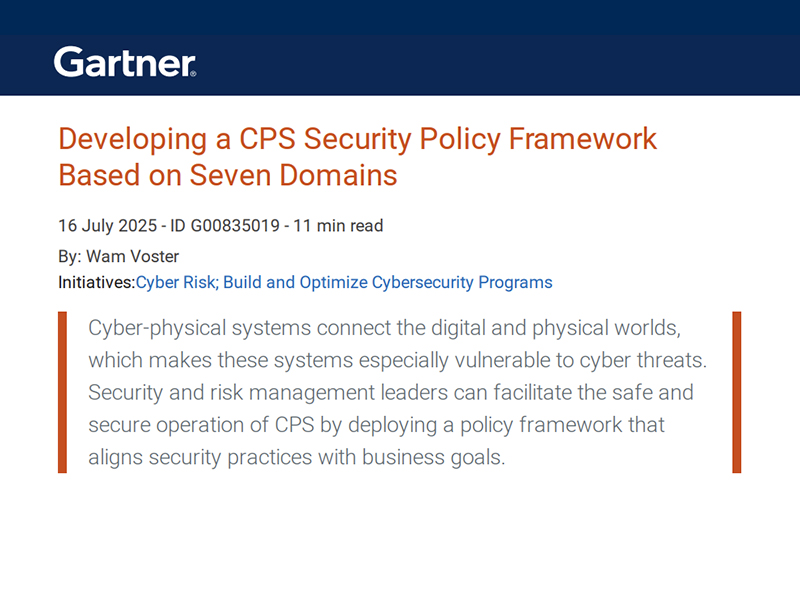Source Gartner – Document “Developing a CPS Security Policy Framework Based on Seven Domains”Fonte Gartner